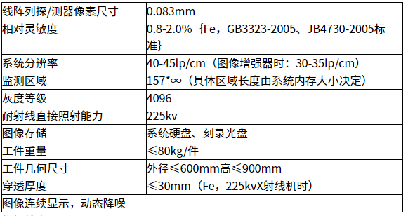 注:*大检测厚度依X射线机的不同而变化,*大可检测厚度70mm Fe.