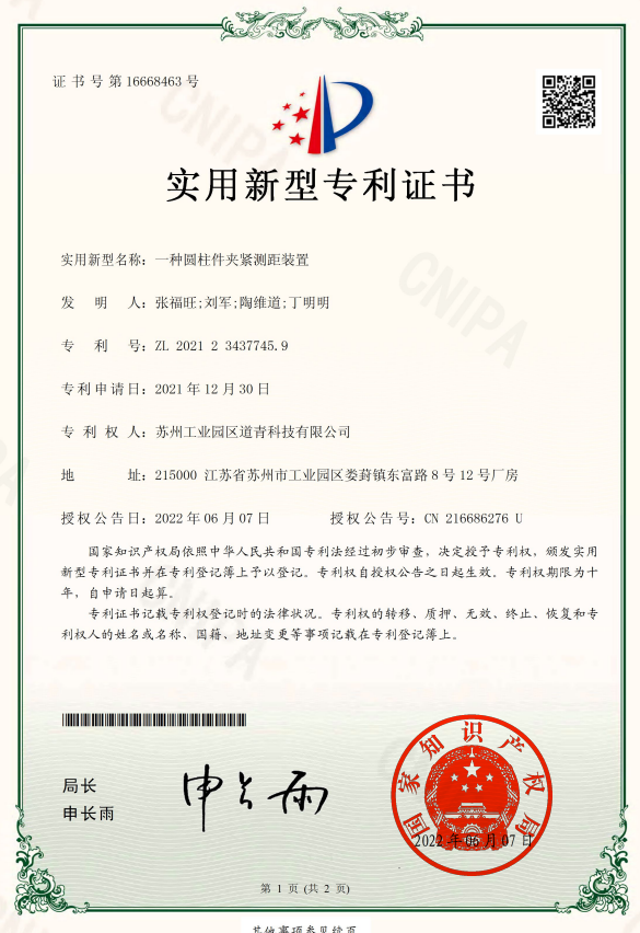 实用新型专利标志着一个企业的自主创新能力和水平,是专业知识和行业经验的结晶,也是公司的核心竞争力之一,同时对公司的持续发展和品牌树立有着重要的作用。