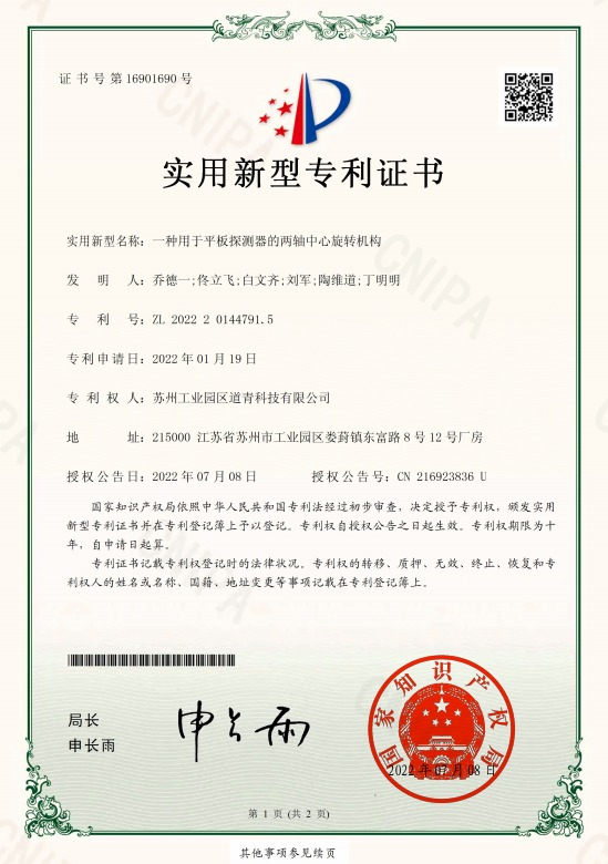 此三项实用新型专利技术是由道青科技技术团队最近完成的科技成果,为获得高质量的图像效果和设备,又前进了一大步,是道青一如既往地坚持持续创新、关注产品质量和服务质量的充分体现。