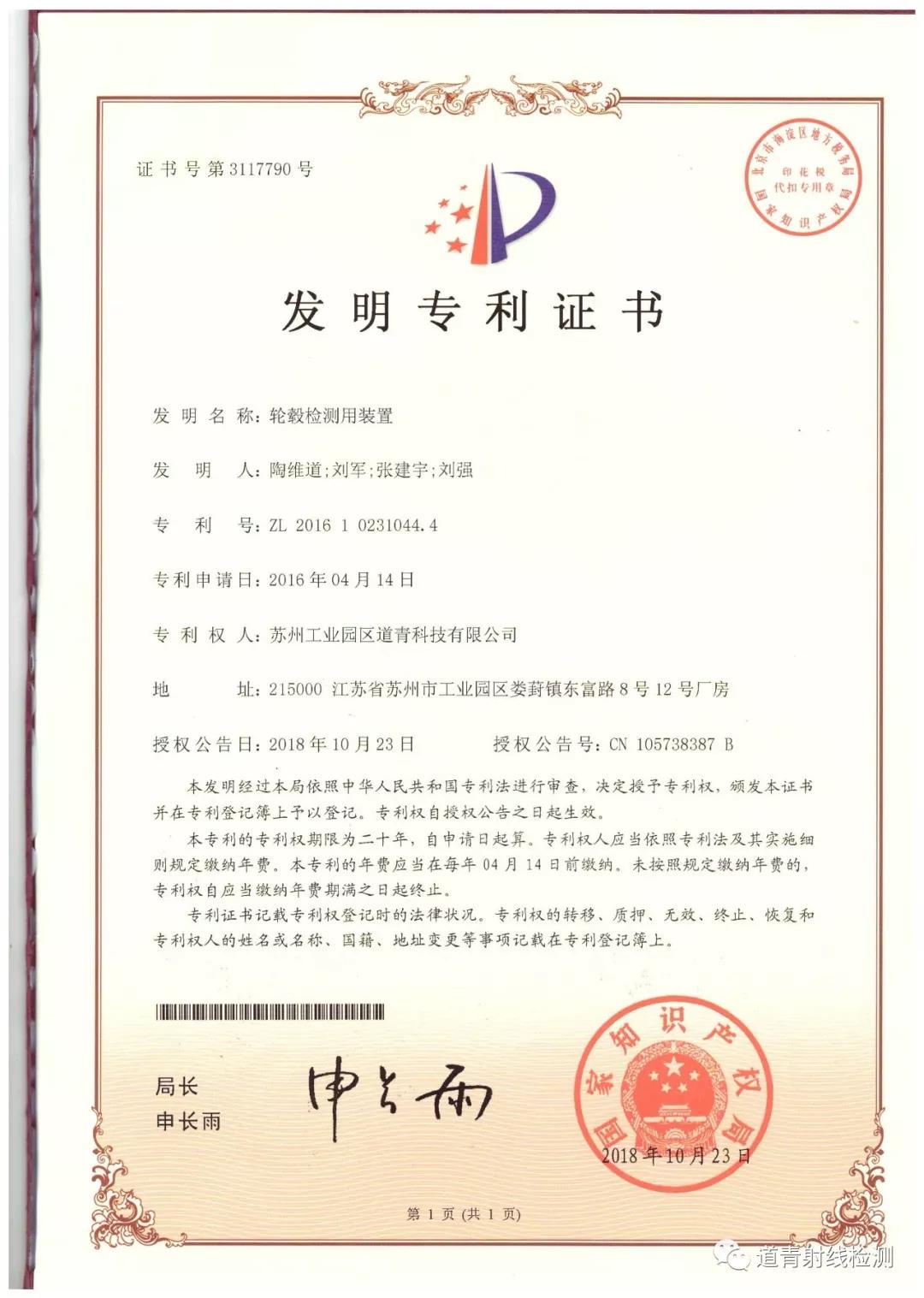 公司近三年的科技成果:一种轮毂检测机构、一种射线发射器校准装置、一种成像板检测装置、一种用于工业X光检测的偏转装置...